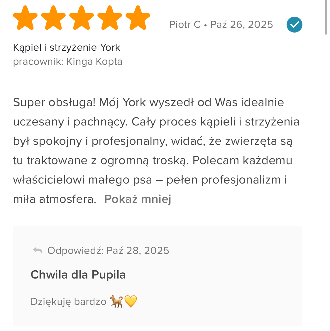 Jesteśmy miejscem, które dba o pupili!